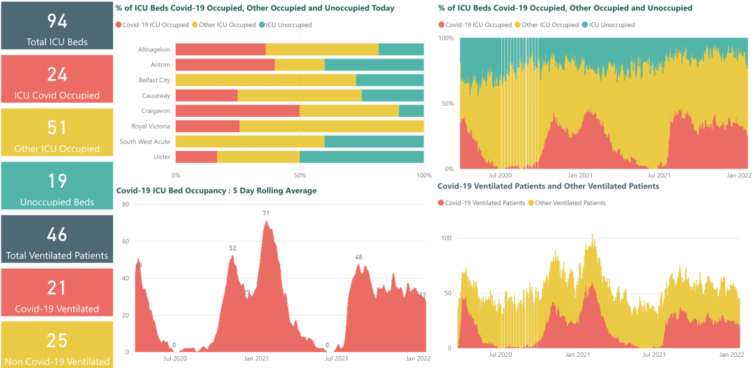 从2021年3月5日以来,苏格兰地区共有29,372名(+98)确诊患者出院。截至1月20日午夜,近期住院的疑似/确诊新冠患者1,514名(-57),其中43名(-1)确诊新冠在重症监护室ICU。