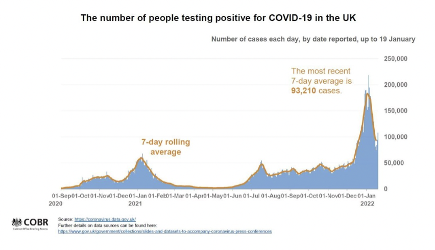 英国首相鲍里斯Boris Johnson和内阁成员在1月19日(周三)上午就最新的新冠数据进行审查后告诉下议院,“现在全国范围内的Omicron感染数据很可能已经达到峰值”。