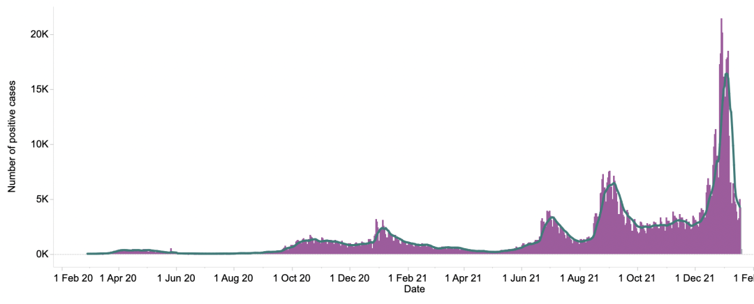 目前,每周的新冠新增确诊率超过了7天内每10万人中有584.4个新感染病例,Omicron变种占到了新感染病例的70%以上。