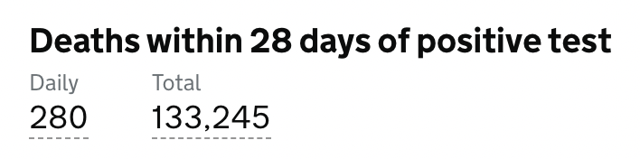 目前英格兰地区使用呼吸机的新冠患者有573人(-7);病亡新冠患者总计133,245人(+280)。