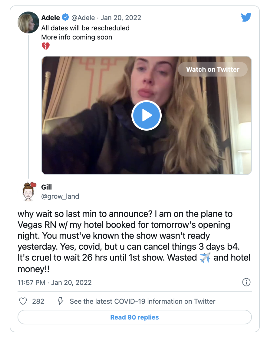 1月21日(周五),Adele在自己的instagram上宣布:原本计划在美国拉斯维加斯开始的今日-4月16日常规驻唱因为新冠疫情原因而不得不重新安排,并且开始对着镜头流泪。