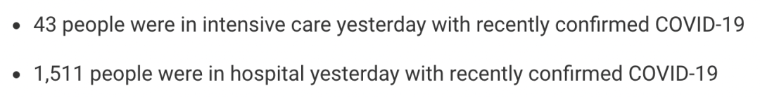 从2021年3月5日以来,苏格兰地区共有29,518名(+146)确诊患者出院。截至1月21日午夜,近期住院的疑似/确诊新冠患者1,511名(-3),其中43名(=)确诊新冠在重症监护室ICU。
