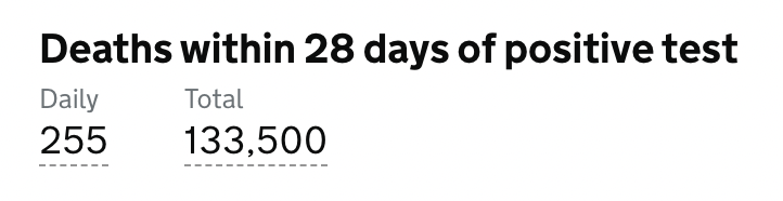 目前英格兰地区使用呼吸机的新冠患者有552人(-21);病亡新冠患者总计133,500人(+255)。