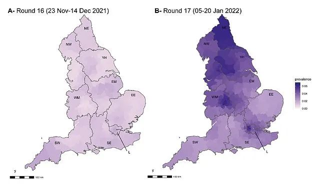 该研究在2022年的前两周向志愿者发放了约10万份PCR核酸检测,其中大约有4,000人(4.4%)呈阳性,这也是该研究自新冠疫情开始以来的最高比率。