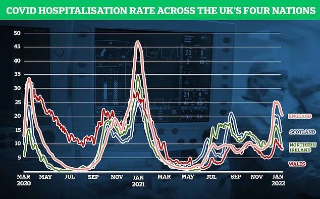 英国四个地区的新冠住院率变化 | 图片来源DailyMail