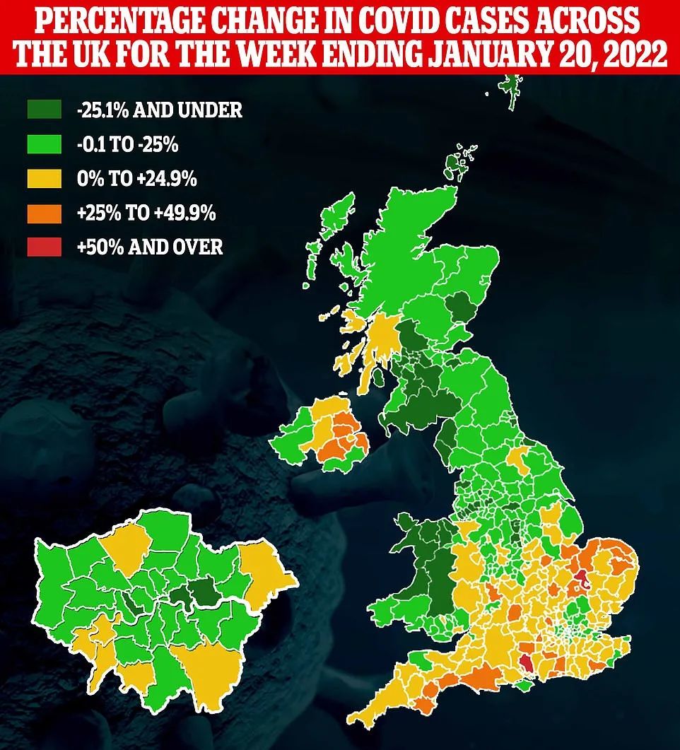 英国各地BA.2亚株分布情况 | 图片来源Daily Mail