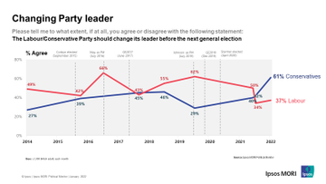 民调公司IpsosMORI发布的另一项数据则显示,61%的英国人认为保守党应该在下次选举前更换领导人,比2021年夏天调查时的42%有所上升。