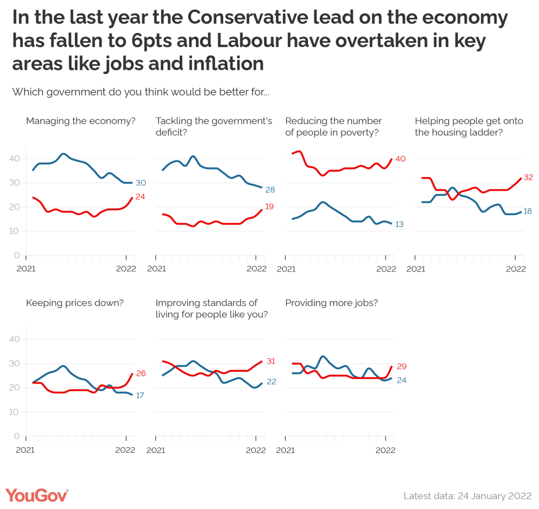 如下表所示,工党在一些经济问题上大幅减少了对保守党的领先优势,并在其他问题上取得了进展。