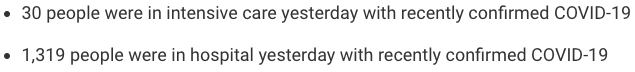 从2021年3月5日以来,苏格兰地区共有30,206名(+123)确诊患者出院。截至1月27日午夜,近期住院的疑似/确诊新冠患者1,319名(-70),其中30名(-2)确诊新冠在重症监护室ICU。