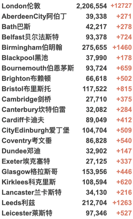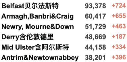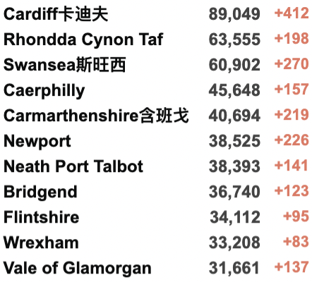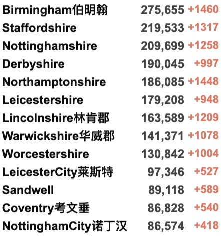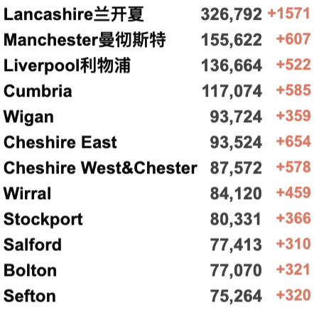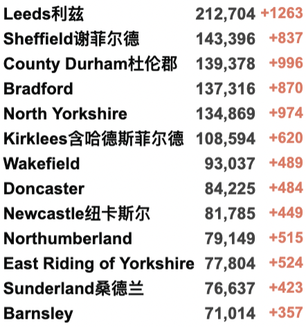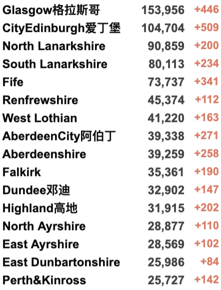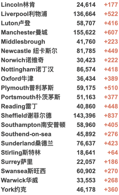 今日英国各地新增数据地区细节更新延迟,颈长将会在明日推文当中统一更新地区细节数据。