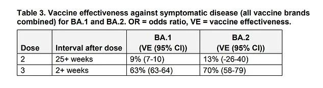 疫苗对两种Omicron变种的有效率 | 图片来源Daily Mail