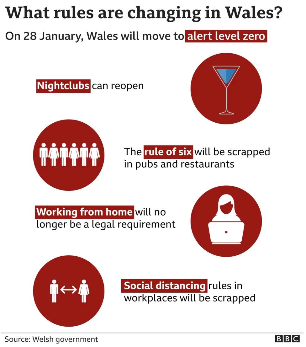 威尔士新冠警戒等级将从1月28日(周五)起被进一步放宽至零级,开始实行最低级别的限制。