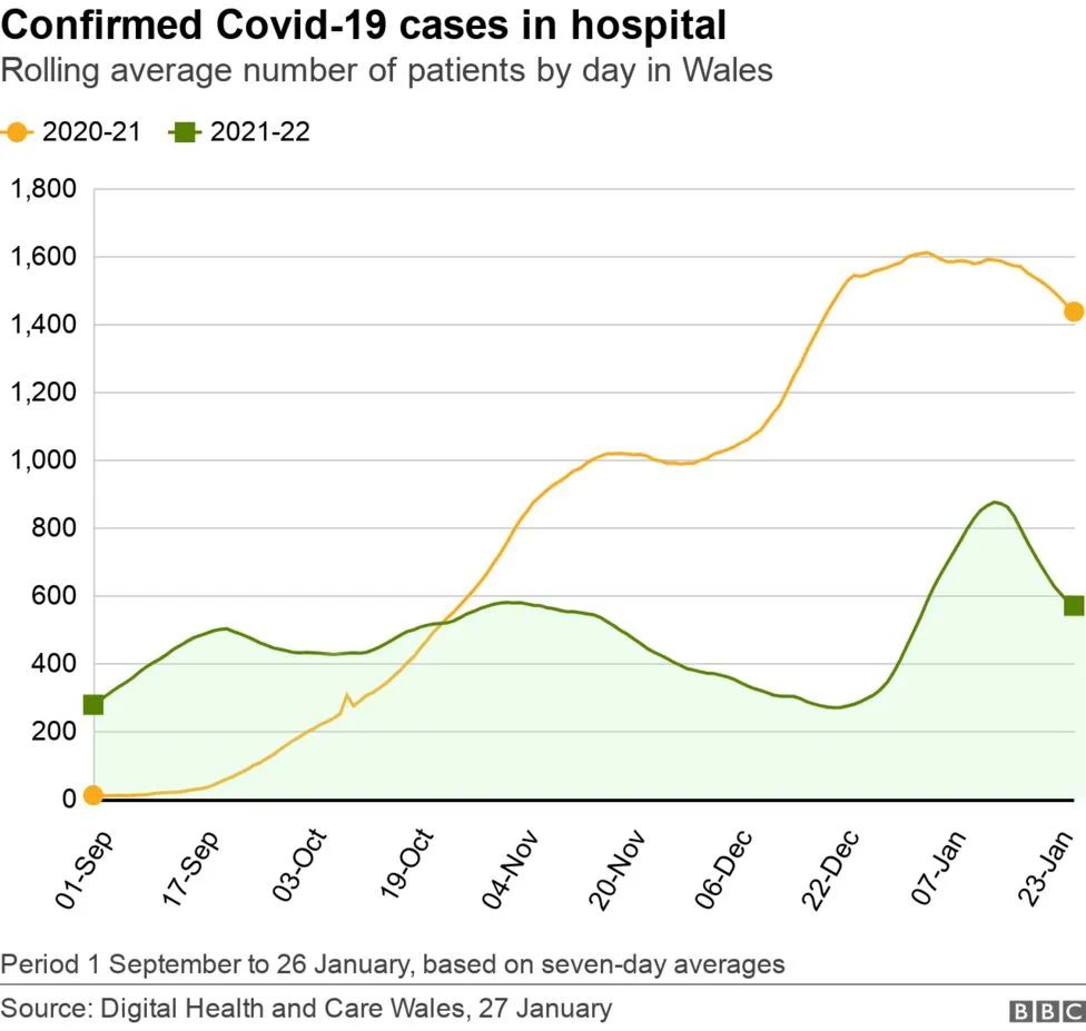 2020-21年与2021-22年新冠住院变化曲线 | 图片来源BBC