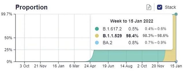 英国最大的新冠监测实验室数据显示,在截至1月15日的七天里,BA.2亚株在所有阳性样本中占0.8%,比之前一周的0.2%有所上升。