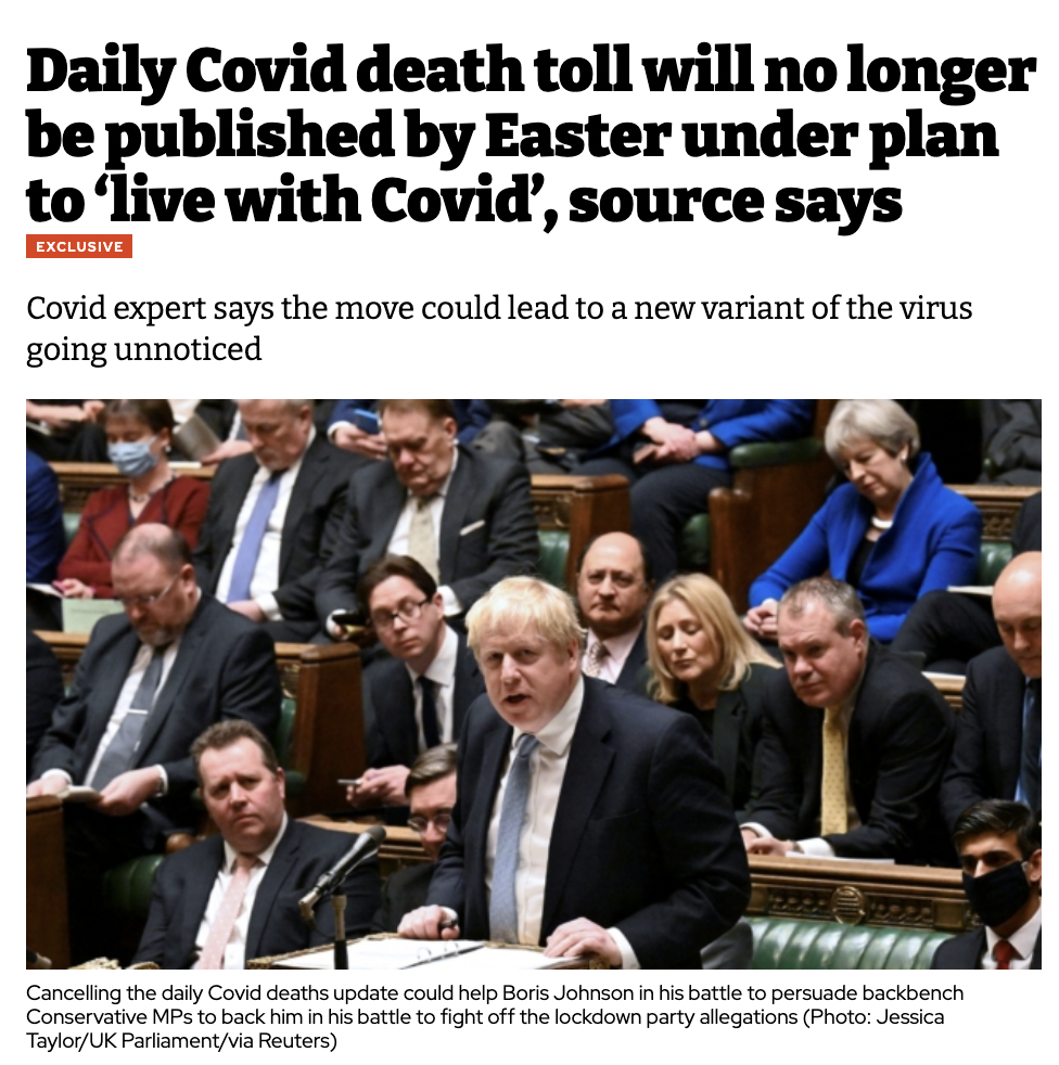 2月2日(周三),一位白厅高级消息人士称,英国首相鲍里斯Boris Johnson希望“最迟在复活节前取消每日公布新冠死亡数据。”——这将是英国政府与病毒共存计划的一部分。