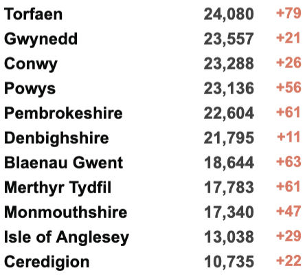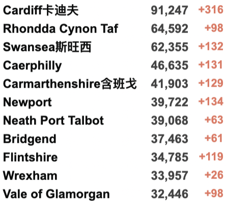 - 威尔士,每20人中就有1人感染新冠,比上周同期每30人中1人感染有所增加。
