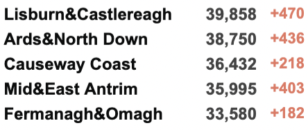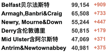 - 北爱尔兰也出现增长,从每20人中有1人上升至每15人中有1人