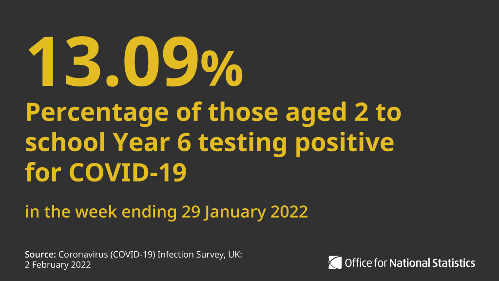 英国国家统计局ONS还显示,在截至1月29日的一周内,英国有309.35万人实时患有新冠,与上周同期相比增加了10.45万人(3.5%)。其中,两岁-六年级的儿童患病率最高,为13.09%,高于上周同期的11.8%。大龄儿童和年轻人的感染比率也在上升。