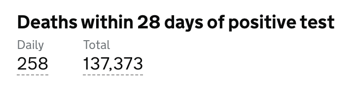 目前英格兰地区使用呼吸机的新冠患者有429人(-3);病亡新冠患者总计137,373人(+258)。