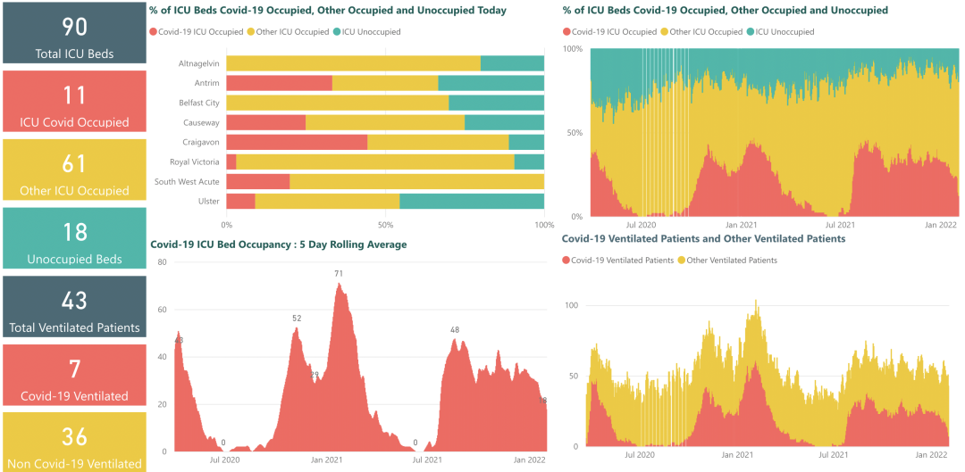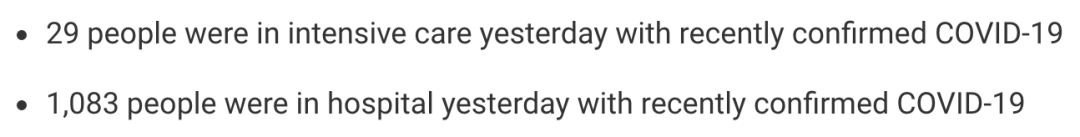 从2021年3月5日以来,苏格兰地区共有30,896名(+108)确诊患者出院。截至2月3日午夜,近期住院的疑似/确诊新冠患者1,083名(-33),其中29名(+1)确诊新冠在重症监护室ICU。