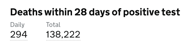 目前英格兰地区使用呼吸机的新冠患者有385人(-10);病亡新冠患者总计138,222人(+294)。