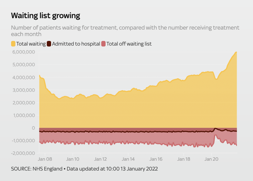 2月8日(周二),英国卫生部长Sajid Javid表示:关于百万NHS等待看病的积压病人——由于没有哪个国家曾经面临过这样的情况,所以他也不知道在现在新冠缓解的情况下,会有多少人前来求医。