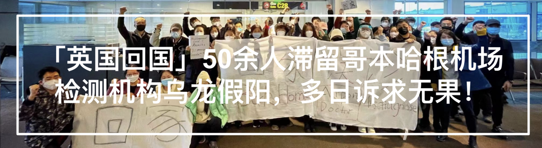 颈长前两天报道了2月8日丹麦哥本哈根机场的“转机检测假阳性”滞留事件,涉事的54人因在转机过程中检测呈阳性被拒绝允许上机,留在了中转地,最后因事件无法立即得到处理而返英或滞留当地。
