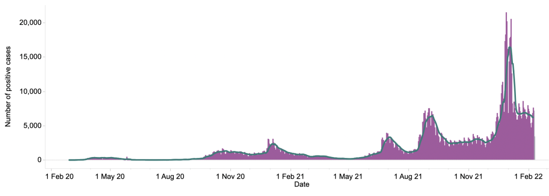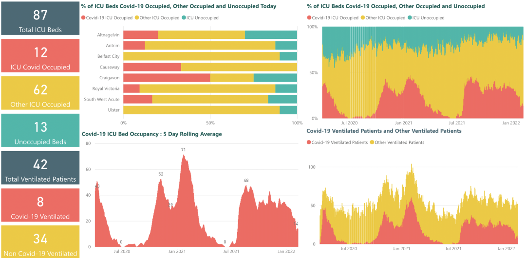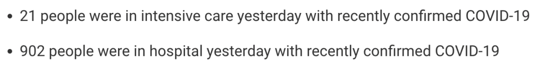 从2021年3月5日以来,苏格兰地区共有31,631名(+54)确诊患者出院。截至2月11日午夜,近期住院的疑似/确诊新冠患者902名(-2),其中21名(+2)确诊新冠在重症监护室ICU。