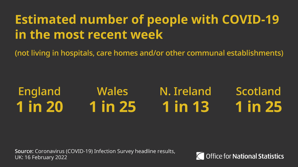 2月16日(周三),英国国家统计局ONS发布了最新的新冠疫情数据显示,英国各地的感染率虽然仍旧保持较高水平,但各地区之间存在差异。