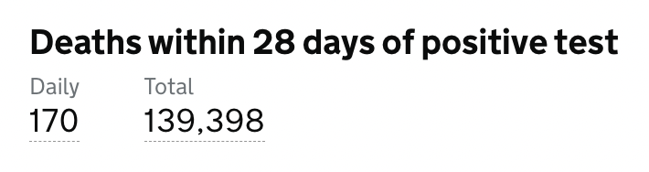 目前英格兰地区使用呼吸机的新冠患者有326人(+3);病亡新冠患者总计139,398人(+170)。