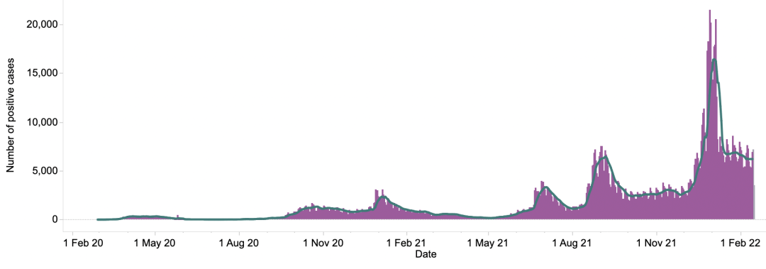 自2月初以来,香港当地每日新增感染人数激增了40多倍——在过去24小时内,当地报告了6,116例新增确诊,过去一周有24人死亡。