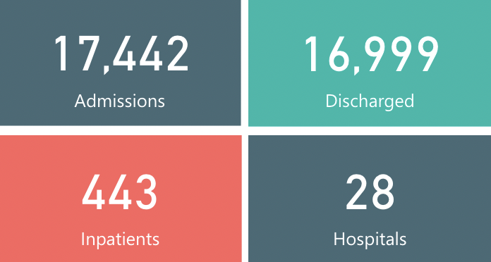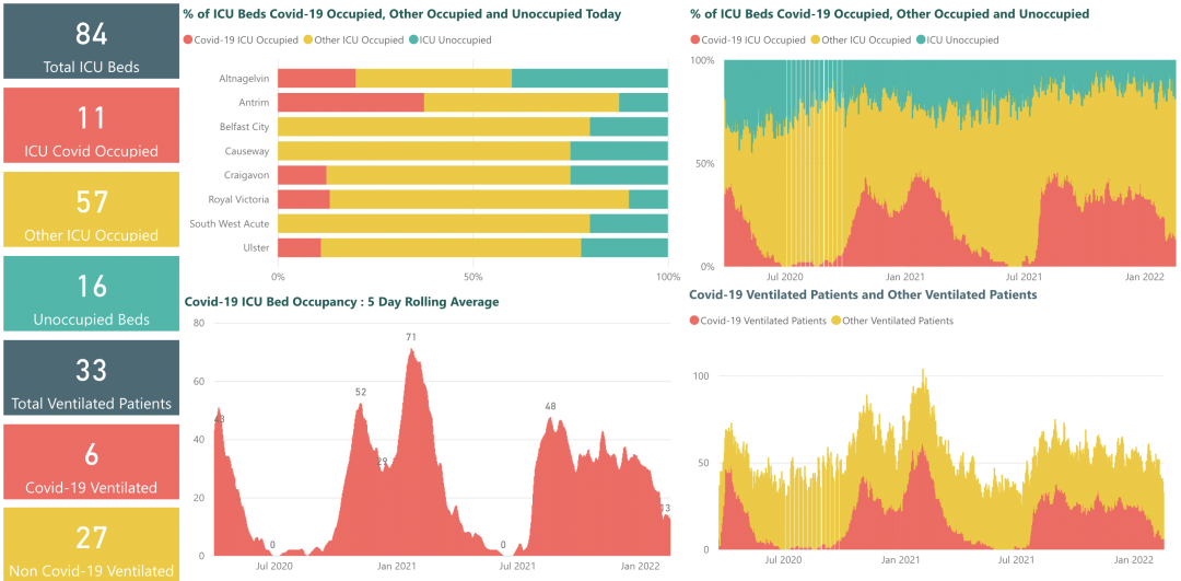 从2021年3月5日以来,苏格兰地区共有32,174名(+118)确诊患者出院。截至2月17日午夜,近期住院的疑似/确诊新冠患者944名(+32),其中11名(-2)确诊新冠在重症监护室ICU。