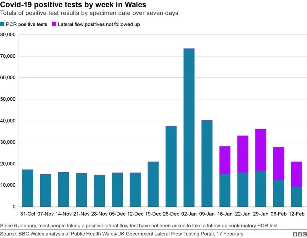 根据国家统计局(ONS)提供的最新数据,在截至2月7日的一周内,威尔士每25人中有1人感染(约为112,600人)。