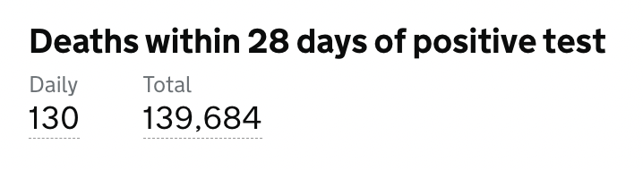 目前英格兰地区使用呼吸机的新冠患者有303人(=);病亡新冠患者总计139,684人(+130)。