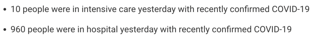 从2021年3月5日以来,苏格兰地区共有32,306名(+132)确诊患者出院。截至2月18日午夜,近期住院的疑似/确诊新冠患者960名(+16),其中10名(-1)确诊新冠在重症监护室ICU。