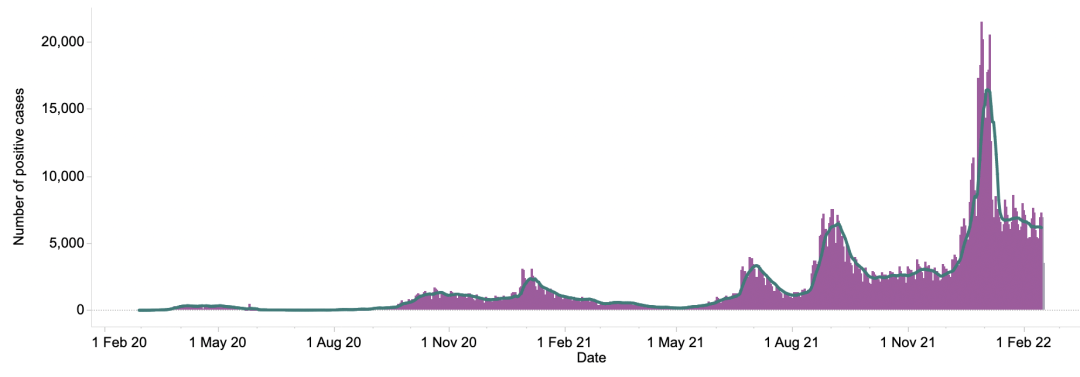 截止至2022年2月20日(周日)英国时间09:00,累计检测结果量467,124,103(待更新);累计确诊18,605,752例(+25,696);累计病亡160,581(+74)。
