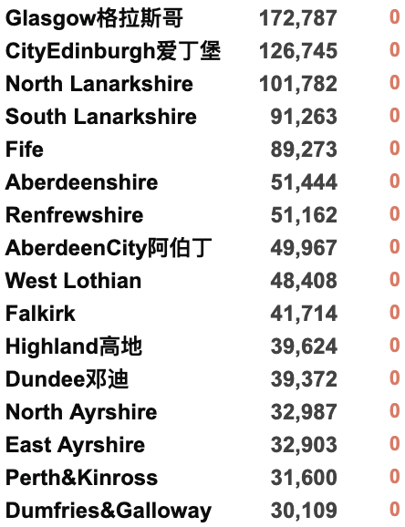 英国疫情实时地图 / 城区具体数据
