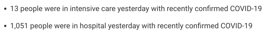 从2021年3月5日以来,苏格兰地区共有32,536名(+230)确诊患者出院。截至2月21日午夜,近期住院的疑似/确诊新冠患者1,051名(+91),其中13名(+3)确诊新冠在重症监护室ICU。