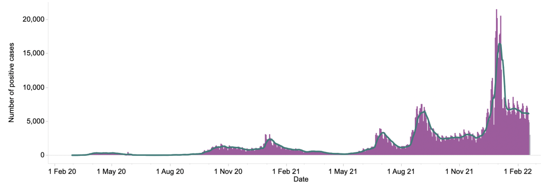 截止至2022年2月21日(周一)英国时间09:00,累计检测结果量469,223,965(+703,991);累计确诊18,654,572例(+38,409);累计病亡160,610(+15)。