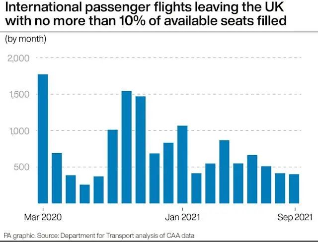 在这19个月的时间里,共记录了14,472个上座率“极低”的航班,平均每天有25个。这些航班主要为运输货物或遣返滞留在海外的英国人而运营的航班。