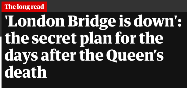 此伦敦桥并非指的是伦敦泰晤士河上的London Bridge,而是以“伦敦桥倒了“London Bridge is down,作为女王去世的代号。