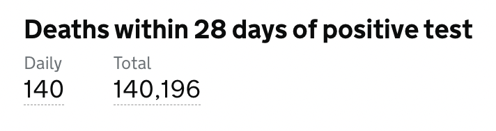 目前英格兰地区使用呼吸机的新冠患者有278人(-6);病亡新冠患者总计140,196人(+140)。