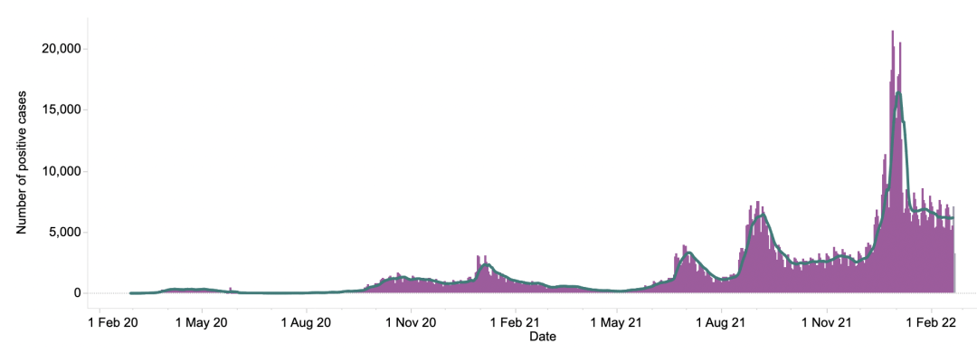 截止至2022年2月23日(周三)英国时间09:00,累计检测结果量470,877,968(+734,238);累计确诊18,734,683例(+39,656);累计病亡161,979(+164)。