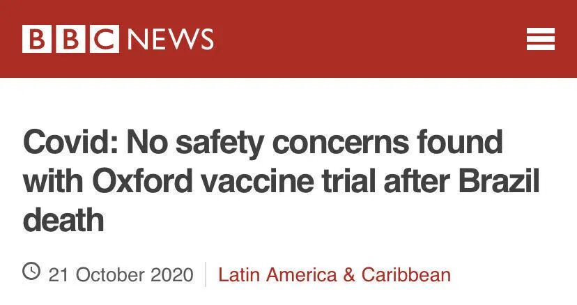 阿斯利康在一份声明中表示,该公司无法就个案置评,但“已遵守所有必要的审查程序”。另外,牛津大学发言人表示,已对这一事件进行详细评估,没有发现临床试验中存在安全隐忧。独立评估的结果以及巴西的监管机构都建议试验继续开展。