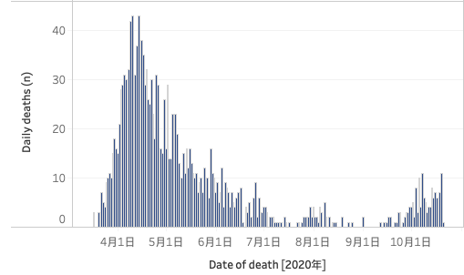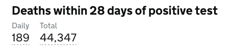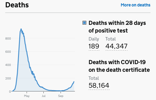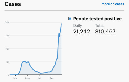 截止至2020年10月22日(周四)英国时间09:00,累计检测结果量28,399,151次(+321,090);累计确诊810,467例(+21,242);累计病亡44,347例(+189)。