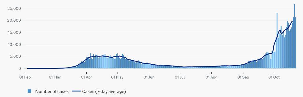 鲍里斯-约翰逊(Boris Johnson)于周四(10月22日)下午4点召开新闻发布会,在这次发布会上阐述了更多关于如何加强对第二、第三等级限制地区的支持。英国首席科学顾问帕特里克-瓦兰斯(Patrick Vallance)和财政大臣里希·苏纳克(Rishi Sunak)也到场发布并回答有关疫情的最新消息。