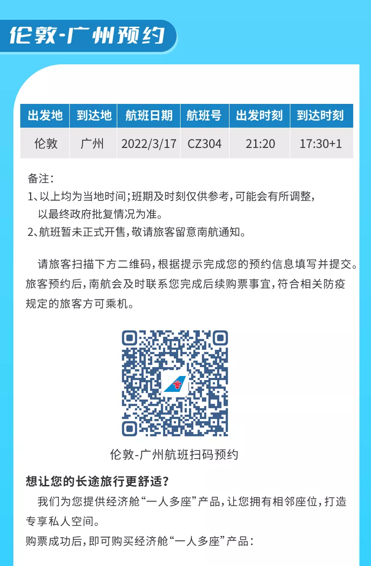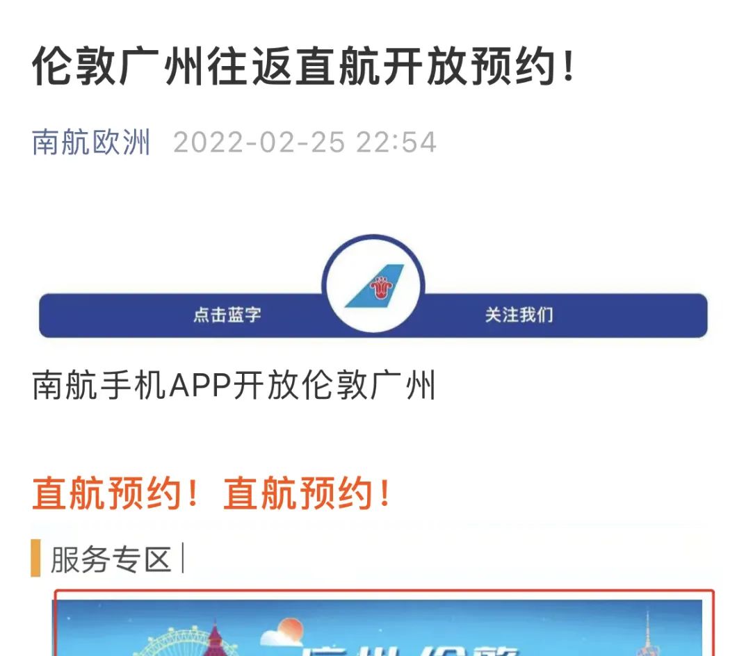 2月25日(周五),南航欧洲官方公众号官宣:南航手机APP开放伦敦广州直航预约!