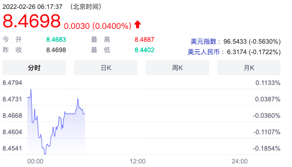 截止颈长发文,英镑汇率略有上浮,微升至8.46。