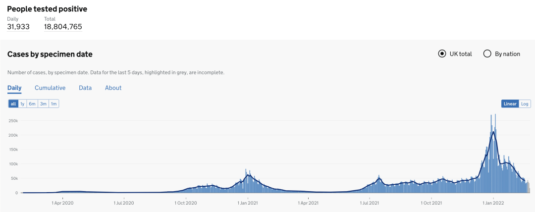 *从2月26日起,英国官方疫情数据在周末暂停更新,只在周一-周五进行更新。