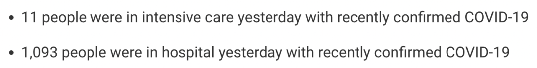 从2021年3月5日以来,苏格兰地区共有33,018名(+118)确诊患者出院。截至2月25日午夜,近期住院的疑似/确诊新冠患者1,093名(+52),其中11名(=)确诊新冠在重症监护室ICU。